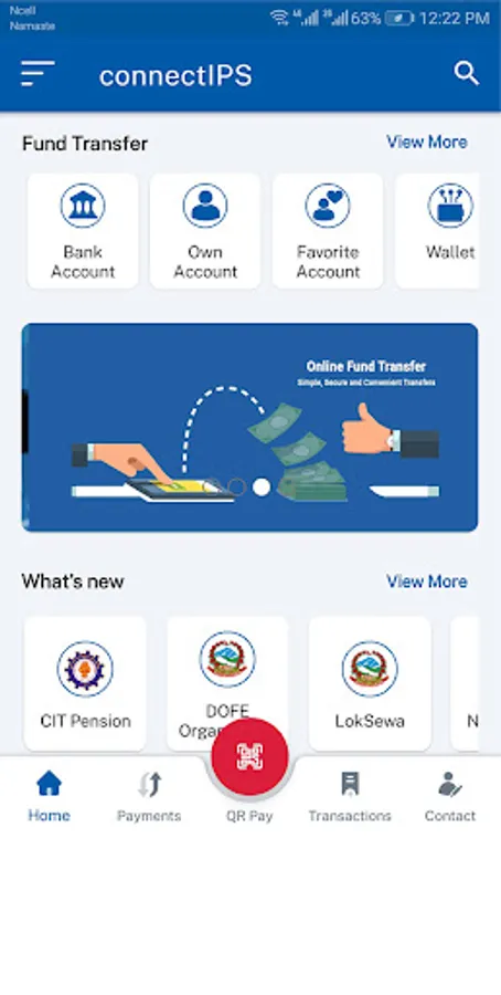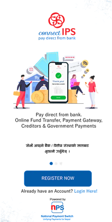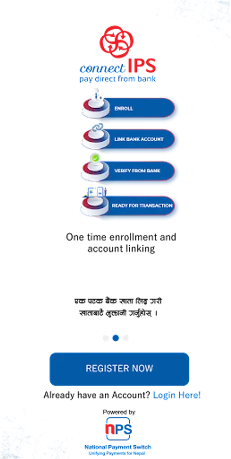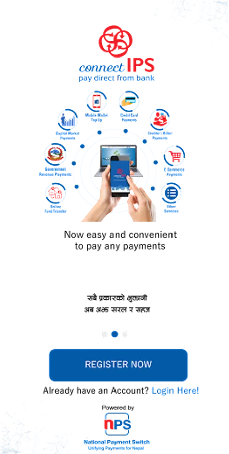 • You can link your bank accounts via Bank Branch or connectIPS using self-verification. Once linked, you can instantly transfer funds from/to bank accounts or use other payment services integrated with connectIPS.