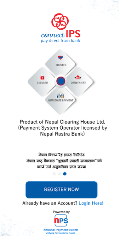 connectIPS is a single payment platform that allows the customers to link their bank account(s) to enable payment process, fund transfer and for creditors payments. An extended product of Nepal Clearing House, we provide a single platform for all citizen-to-government (C2G) payments, customer-to-business (C2B) and peer-to-peer (P2P) payment transactions directly from/to the bank accounts, merchant payments and more payment options.