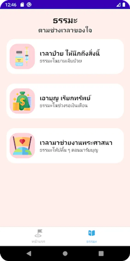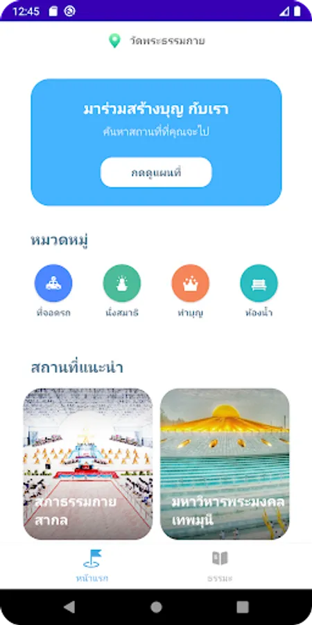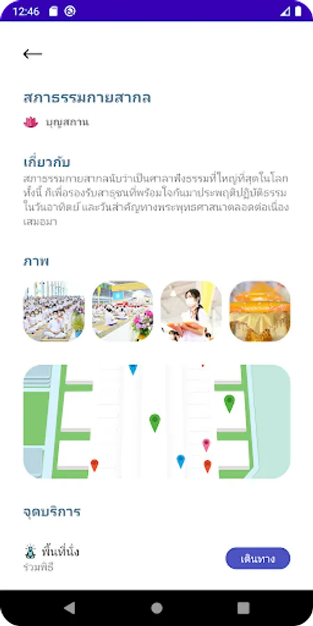 An app that tells important points in the temple for newcomers in the temple, such as toilets, parking lots, attending merit-making in order to prevent getting lost and to maintain the joy of merit both before and after