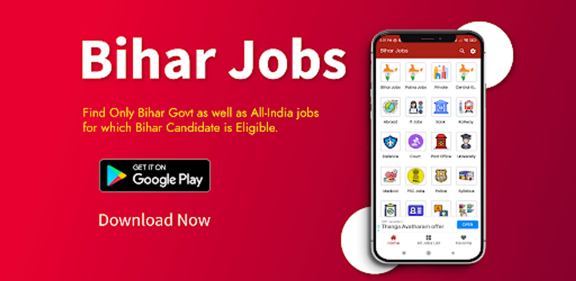 Bihar Jobs application helps the job seeker to search for public and private jobs in Bihar and all India jobs on their phone itself. Our App with simple user interface with a job search engine and various categories helps seekers to search for their career opportunities in the publicand private sector daily basis.