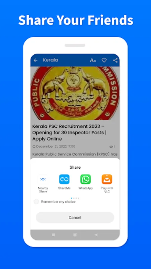 Our Kerala Jobs Alert app also covers KPSC, CMD Kerala, SSC, UPSC, Railway, Kerala Postal circle, Bank jobs, Indian ARMY Recruitment Ralley Notifications, Kerala Police Jobs, Kerala Forest Guard Vacancy, Clerk Jobs, Teaching jobs, Central govt job in Kerala, etc.