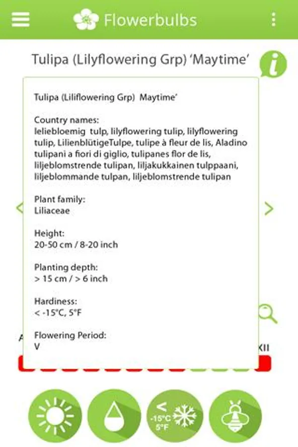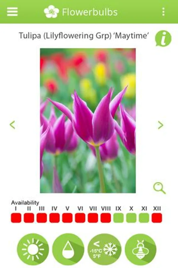 InfoflowersPlants apps offer it all! A simple and efficient search engine on your mobile phone to find that one flower bulb you are looking for.
