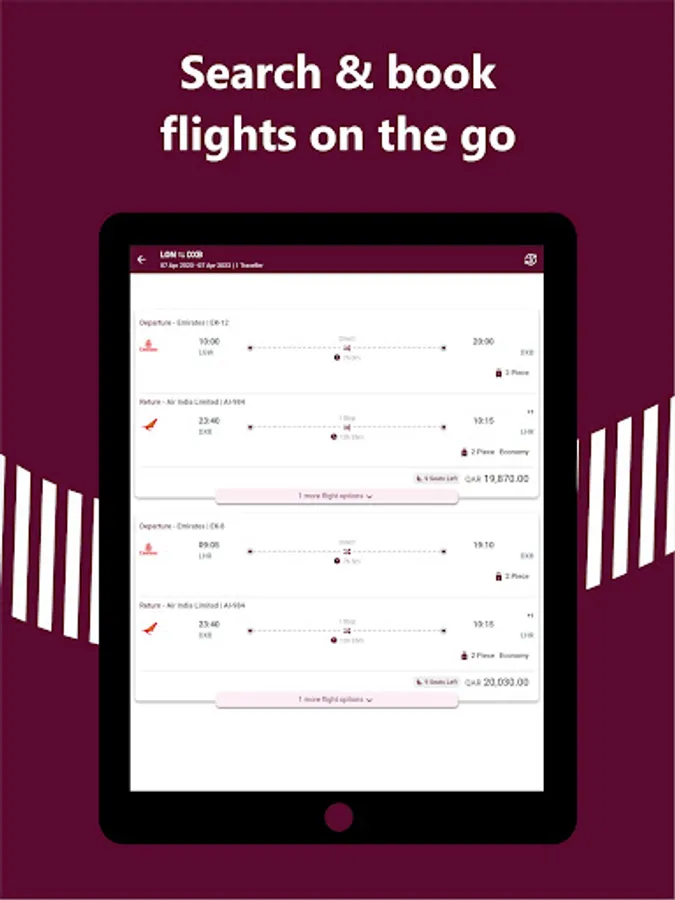 ✈️Online Flight Ticket Booking - Get attractive prices on online flight tickets from popular airlines like Qatar Airways, Emirates, Etihad, Gulf Air, Air India, Indigo, Singapore Airlines, Lufthansa, Thai Airways, British Airways, and more.