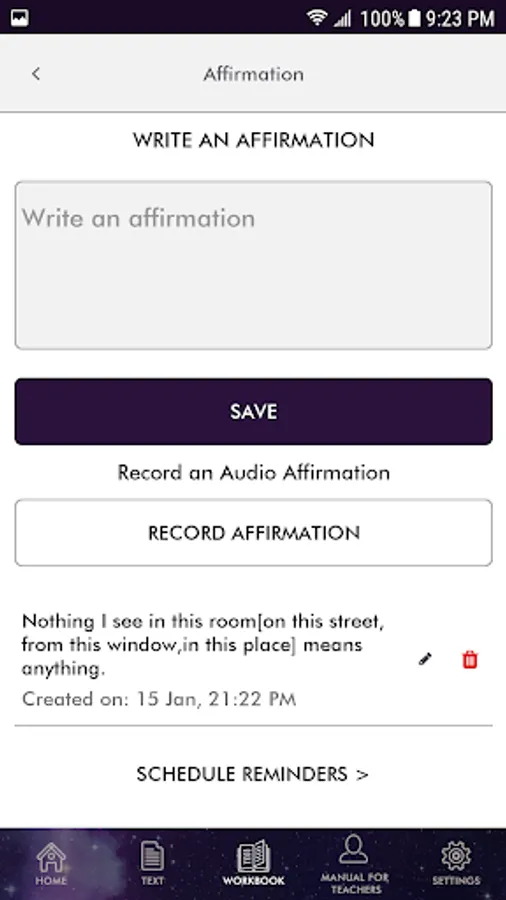 SET A REMINDER: Write or Record an Affirmation for any Lesson in your own voice and set as a Reminder.