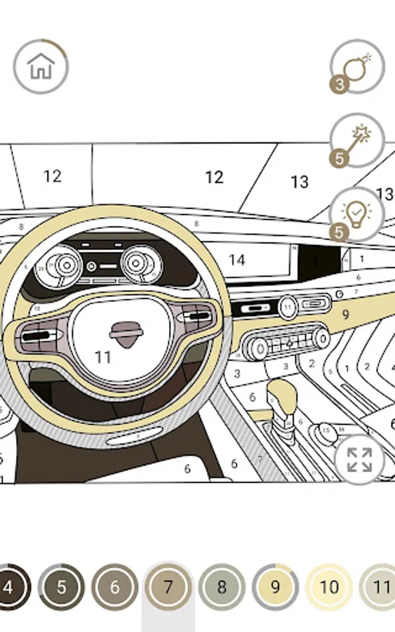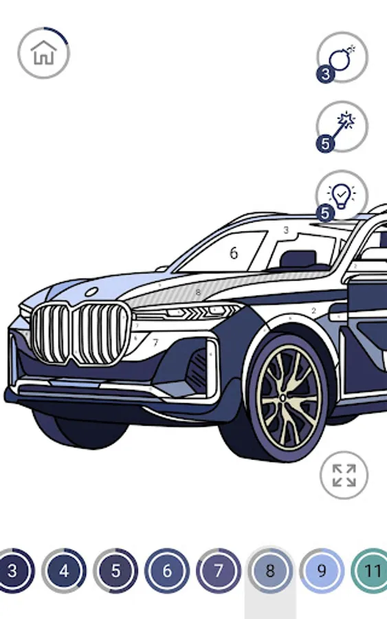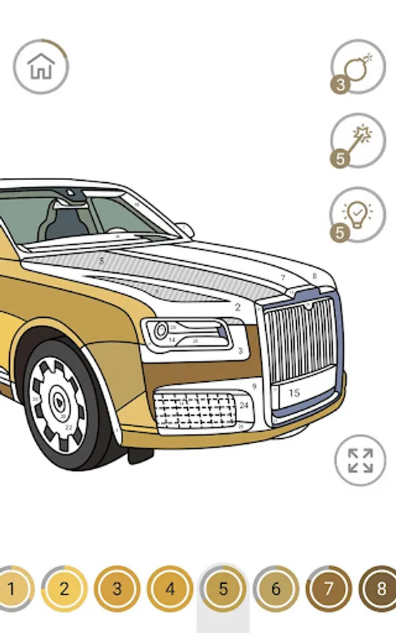 * Zoom in, zoom out for paint by number small details of car coloring book