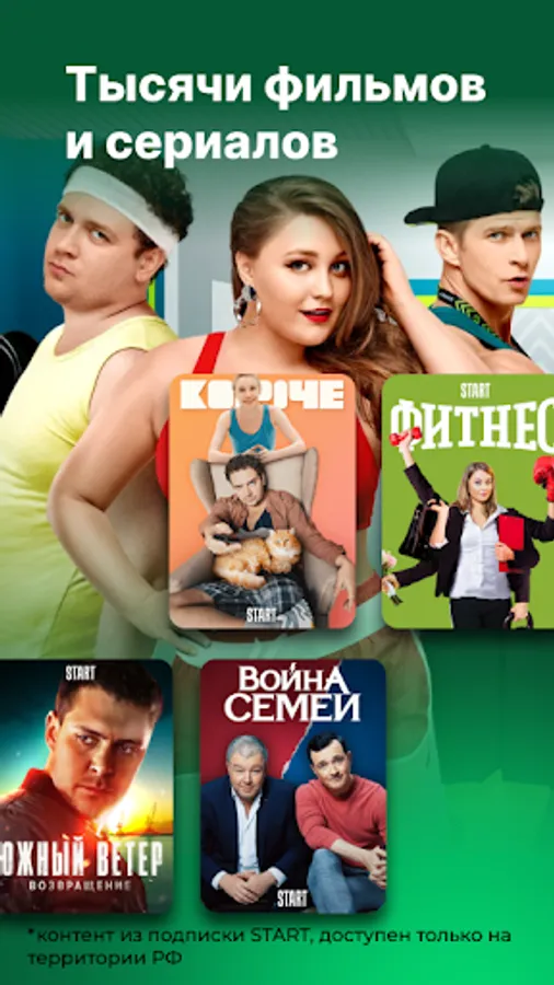 In the packages Kinomir and START you will find such popular films and series as "Kept Women", "Couple from the Future", "Grand", "Native", "Vampires middle lane", "Mediator", "Former" and others. New weekly updates!