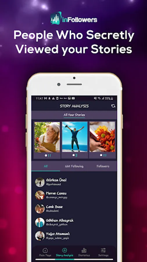 Find out who is viewing your profile, who blocked you, who unfollowed you with IFollowers, the reliable, fast and most accurate Instagram analysis application. See your profile's secret admirers, identify who doesn't follow you back, unfollow with one click, watch Instagram stories anonymously and discover more.