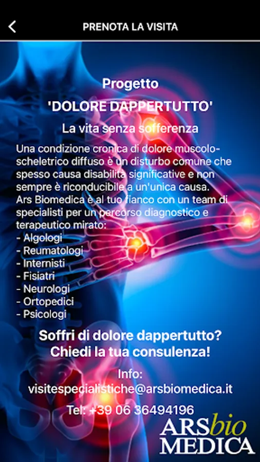 Tool created for the 'Pain Everywhere' project useful for registering and booking a visit concerning chronic widespread pain (CWP).