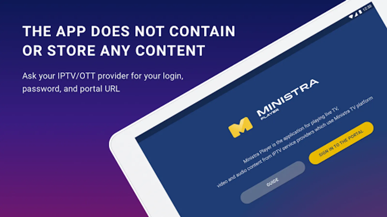 Before downloading the application, we strongly recommend that you contact your IPTV provider and confirm that Ministra Player is compatible with their service. Also ask your provider for a login, a password, and a link to their authorization server (portal).