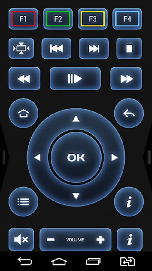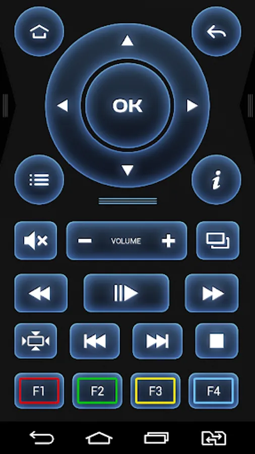 The interface of the application is an adjustable remote with all control elements which are the same as on a standard remote of Aura HD media player.