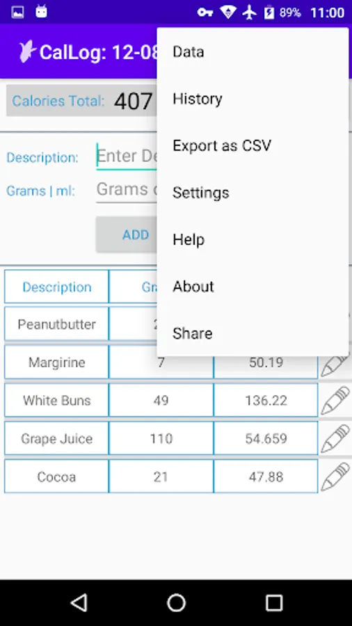 CalLog, short for calorie logger, is a simple and easy to use calorie intake logger.