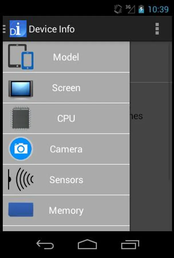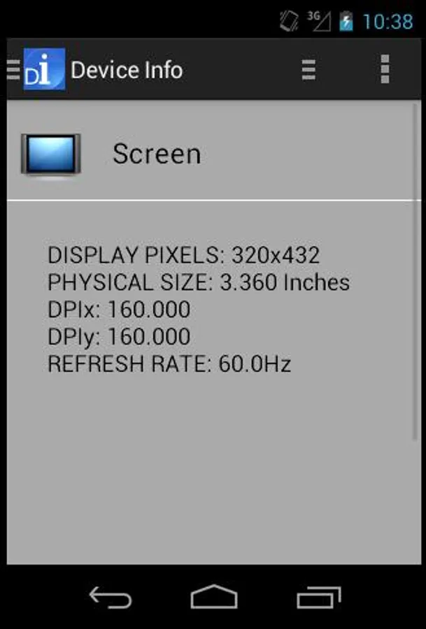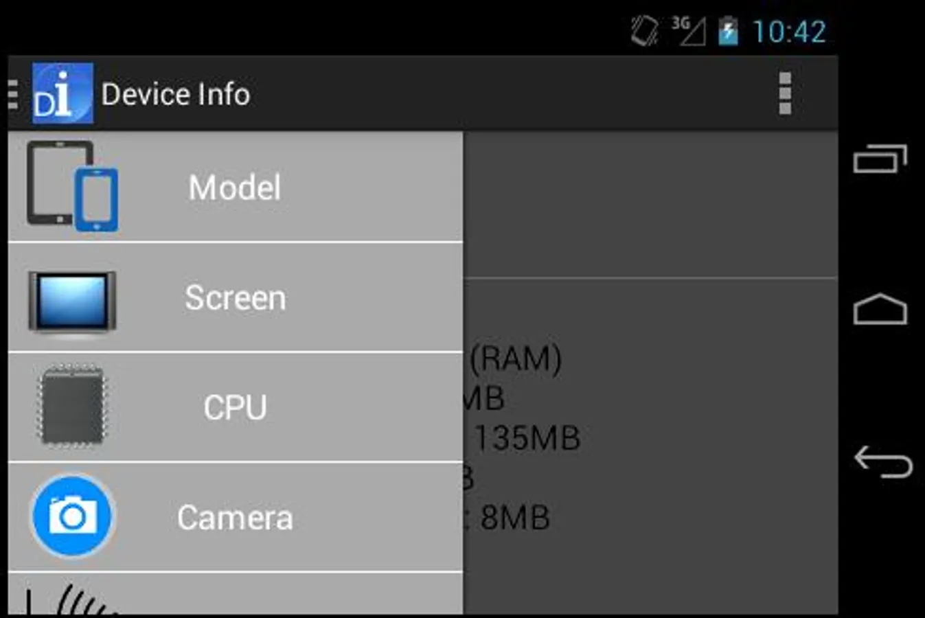 Find the CPU type and clock frequency of your device, the amount of cores and more CPU information. This application will display information about your device hardware and software. Like screen size and resolution, amount of RAM and storage memory, and general device model information.