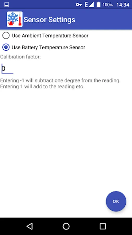 The app uses the device's ambient temperature sensor if present else it will use the battery temperature sensor. Please notice that if it is using the battery temperature sensor that the reading is only accurate if: