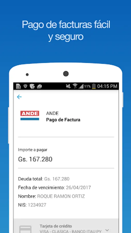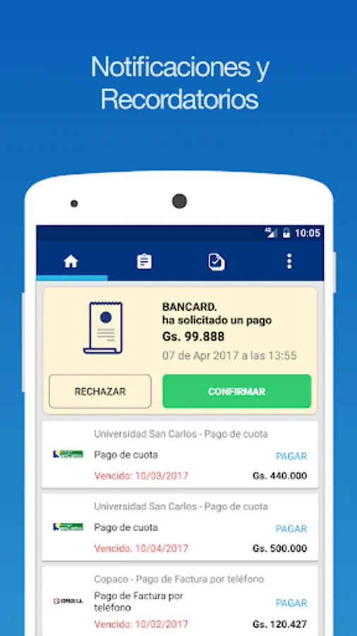 It is a service provided by Bancard, which allows a comfortable and easy to comply with the payment of their accounts as well, balance top up mobile phones of all operators in the country; It is aimed at all those people who use debit and credit cards of any entity attached to Bancard system, who want to optimize time and reduce costs.