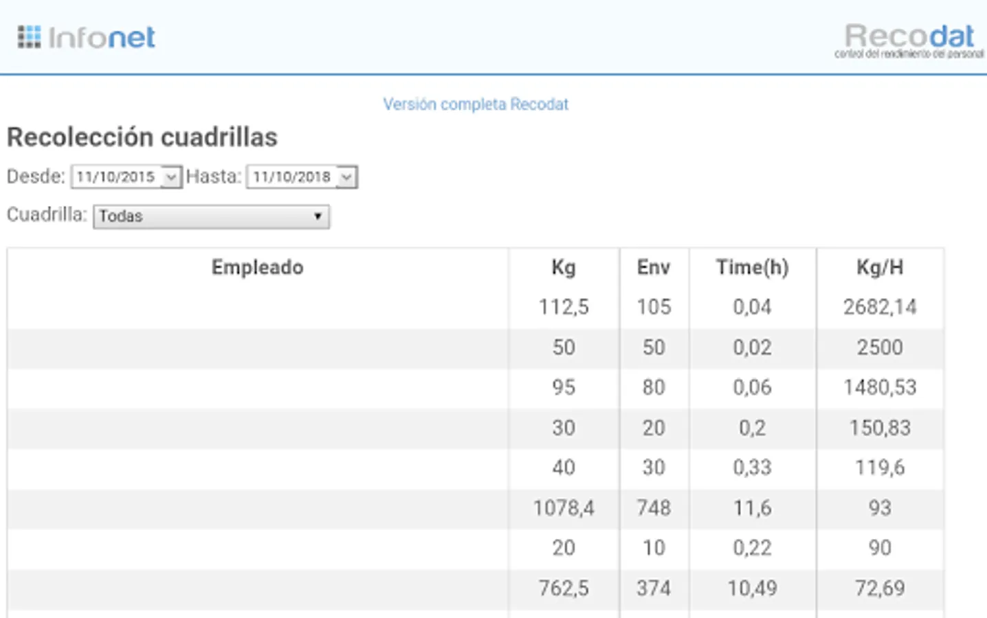 Infonet application developed by Consultants that allows any Android device to access control application Recodat collected.