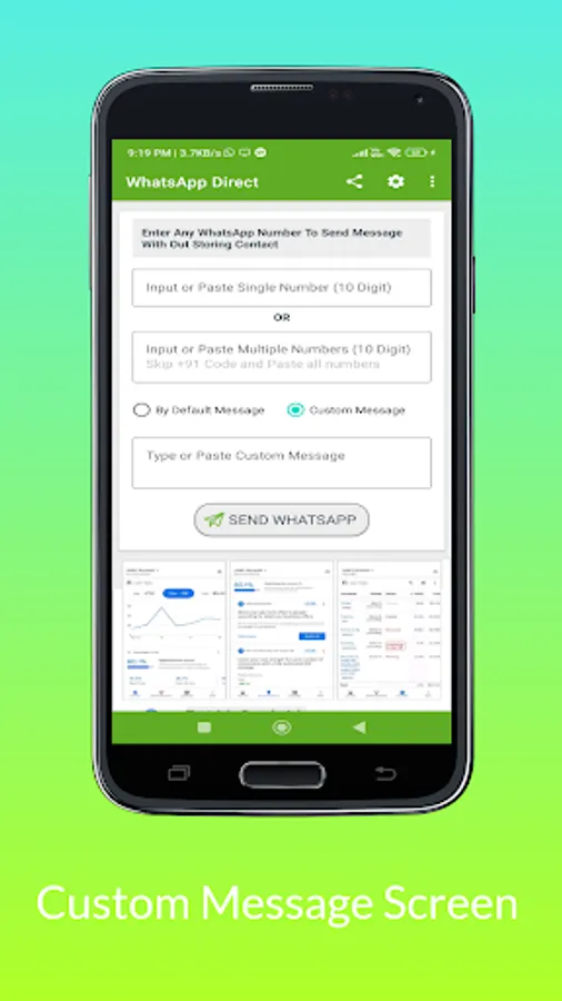 Also this app has feature of sending message to only 1 number or more than 1 number i.e. Multi Number Message. This would help all marketing person or those who want to share their details and grow their business like StartUps.