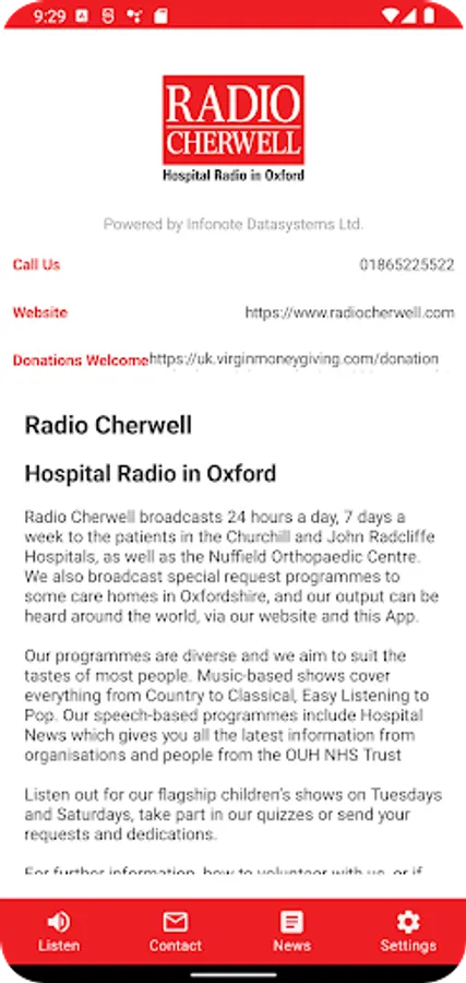 The app also contains local news headlines which are updated throughout the day via the Radio Cherwell Twitter feed.