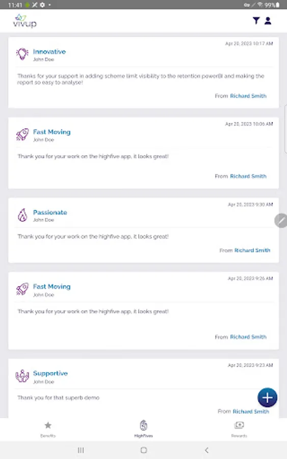 The Vivup highfive Recognition and Reward App enables leaders to introduce or build upon a culture of recognition and reward within their organisation.