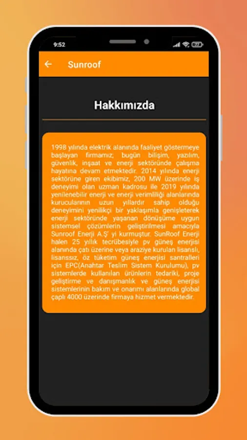 Our company, which started to operate in the field of electricity in 1998; Today, he continues his working life in informatics, software, security, construction and energy sectors. Our team, which entered the energy sector in 2014, with its expert staff with over 200 MW of work experience, expanded the long years of experience of its founders in the fields of renewable energy and energy efficiency in 2019 with an innovative approach and established Sunroof Enerji A.Ş. has established. SunRoof Energy is currently in the fields of EPC (Turnkey System Installation), supply of products used in pv systems, project development & consultancy and maintenance & repair of solar energy systems for licensed, unlicensed, self-consumption solar power plants installed on the roof or land in the field of pv solar energy with its 25 years of experience. It serves over 4000 companies globally.