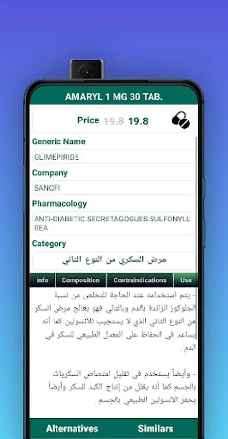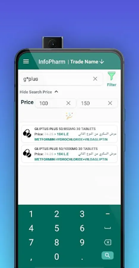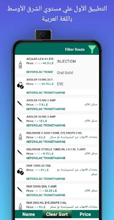 The application includes an important and distinctive feature, which is the filtering of search results according to the medicinal form of the class such as (tablets / capsules - syrup - topical paint - injections of all kinds - (spray) - effervescent - vaginal preparations - soaps - eye medicines - ear medicines - nasal medicines - preparations Mouth of all kinds - suppositories - powder - inhalation - medical supplies - Sachets - ....).