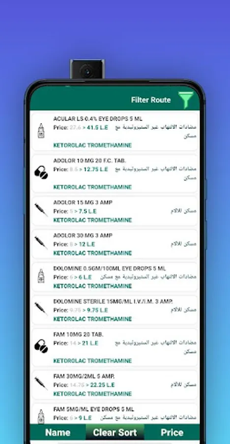 When you search for a product and you click on the Similar button, the Filter Route button appears in the new window, and in it only the available drug forms appear in this class, through which you can find alternatives to the class, whether for example: tablets only, syrup only, or just injections .... and so on. .