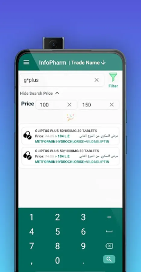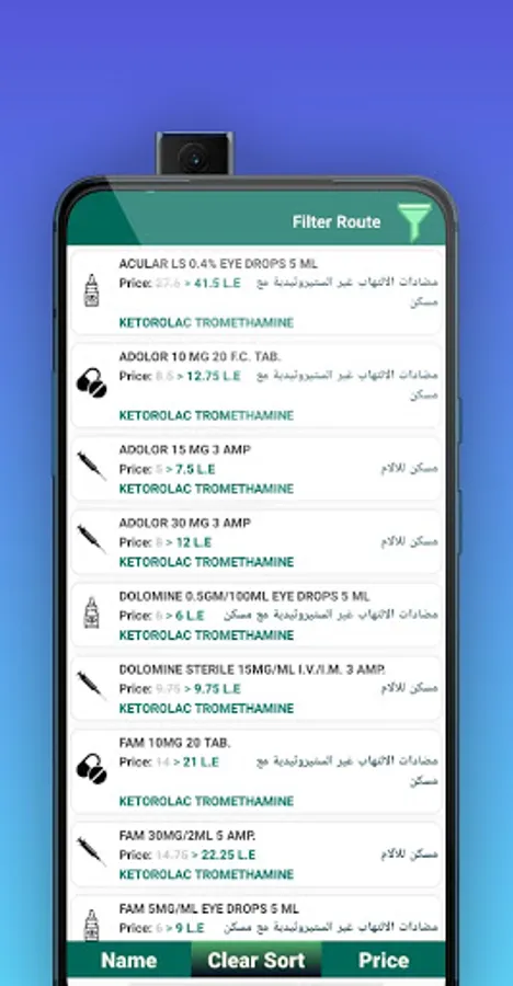 The application includes an important and distinctive feature, which is the filtering of search results according to the medical form of the category such as (tablets / capsules - syrup - topical paint - injections of all kinds - (spray) - effervescent - vaginal preparations - soaps - ophthalmic medicines - ear medicines - nasal medicines - oral preparations. All kinds - suppositories - powder - inhalation - medical supplies - bags - ....).