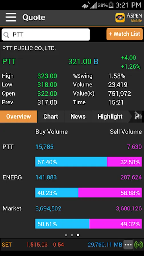 • Real-time information update to provide you up-to-the-minute updates of prices for stocks, future contracts, warrants, derivative warrants, and stock indices from SET and TFEX.