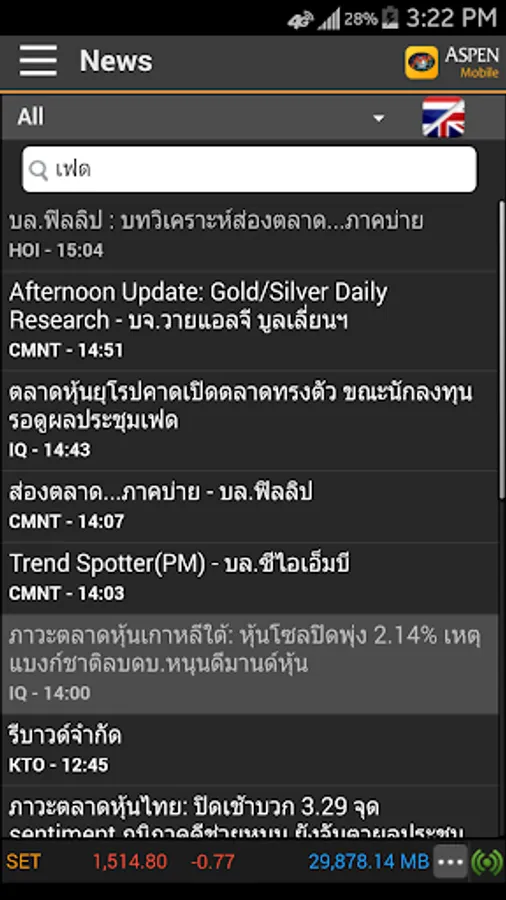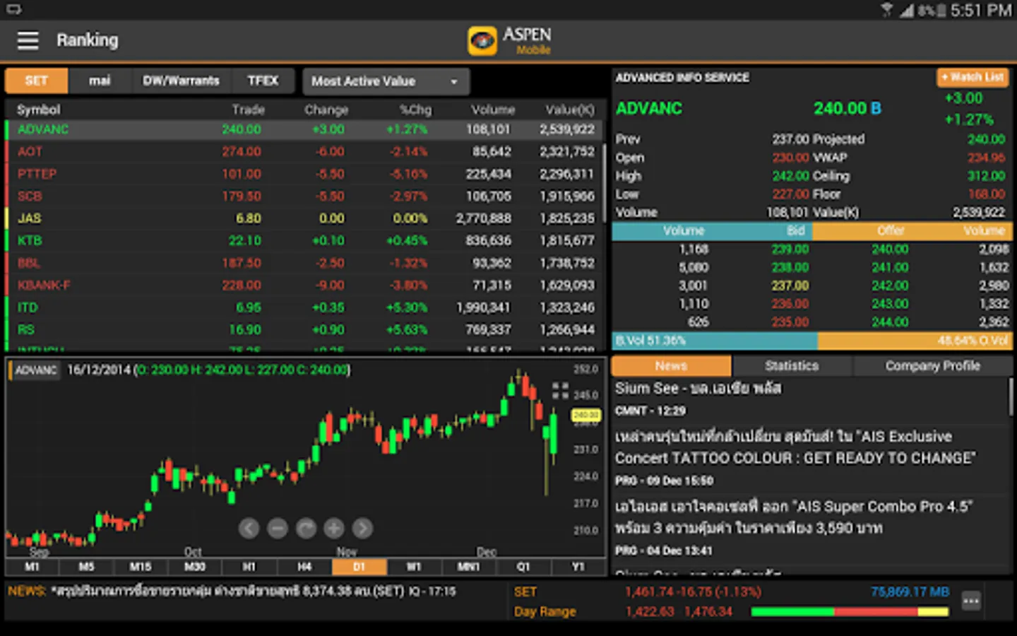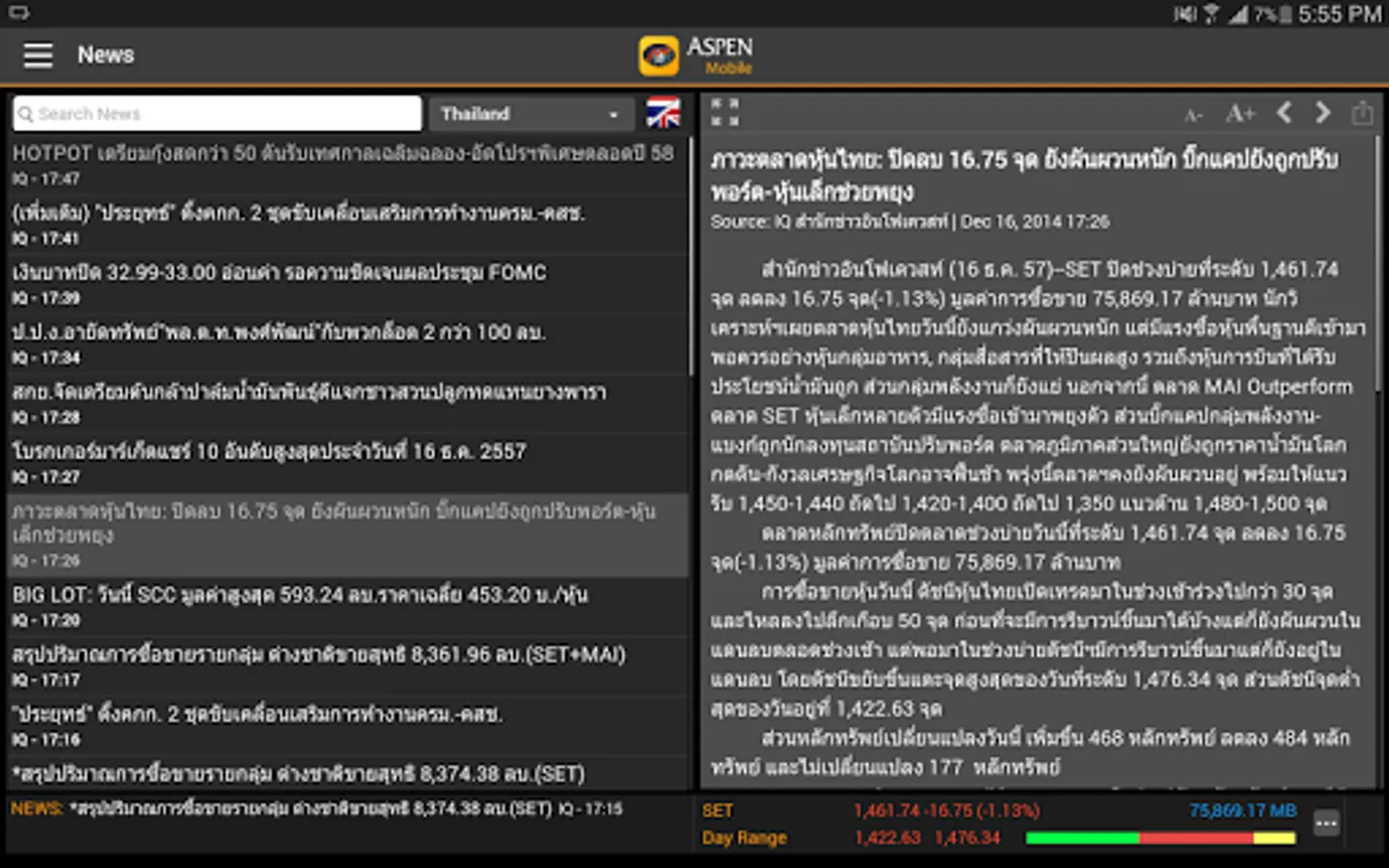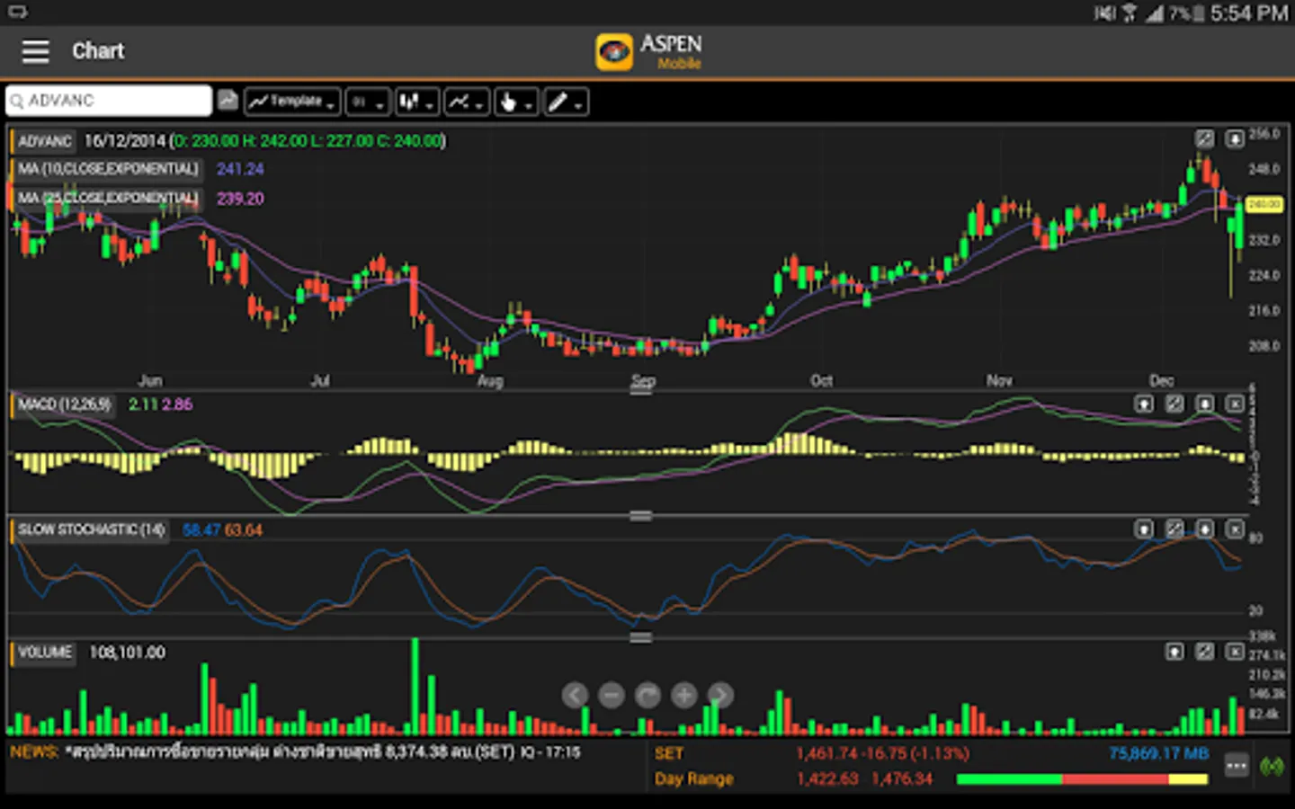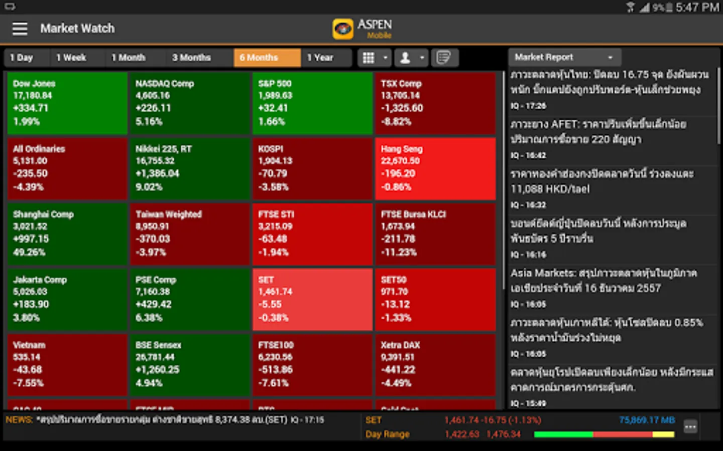 Aspen Mobile is the “state-of-the-art” stock analysis tool brought to you by ThaiQuest Limited, the leading provider of real-time financial information service in Thailand. Aspen Mobile lets you access comprehensive news and information for your trading decision. Market Information, Quotes, Charts and News are presented in an easy-to-read and intuitive user interface formatted for your smartphone and tablet.
