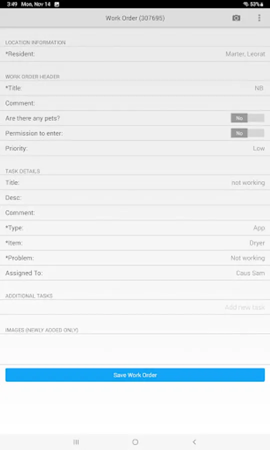 b.Inspect: Allows an end user like a Property Manager or Leasing Agent to submit work orders when doing a move out walkthrough with residents moving out. Primarily intended for the student housing tenants.