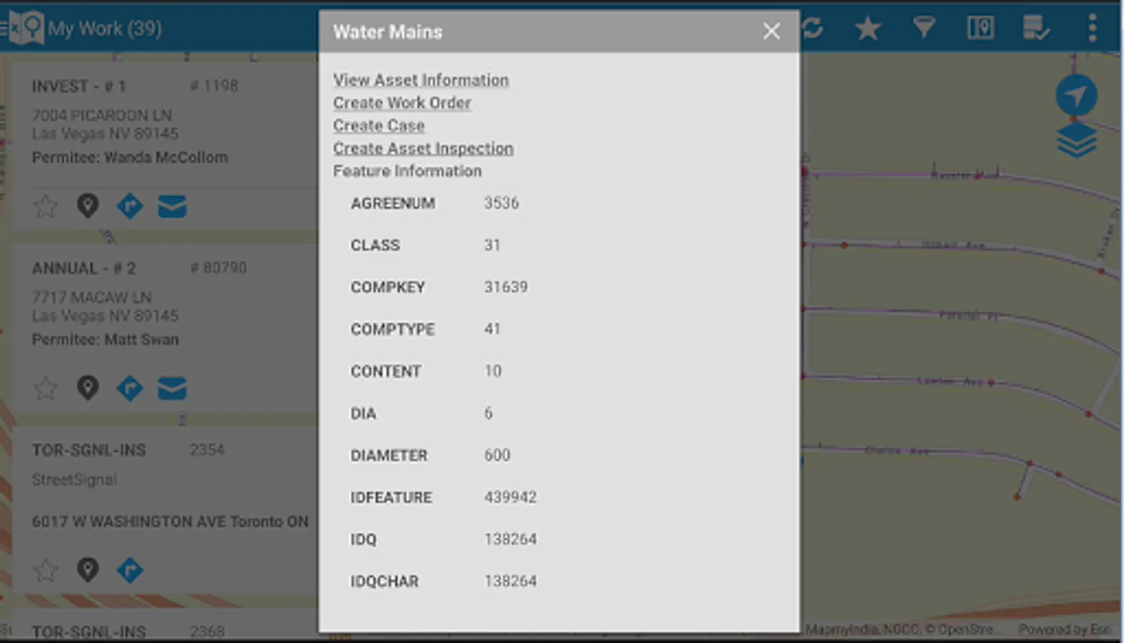 • Create new service requests, CDR inspections, work orders, case records, and asset inspections