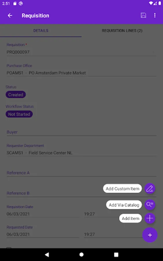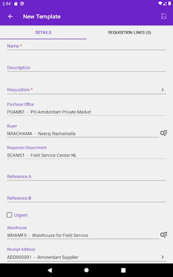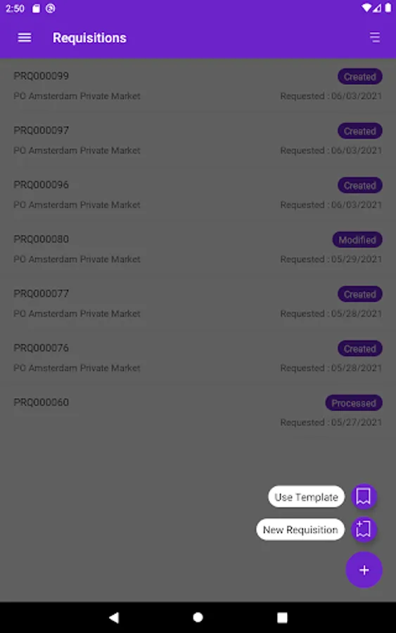 The Infor LN Requisition App provides user the ability to create Requisitions. The created Requisitions can be submitted and sent to the backend LN. User can either create new template with items or save a Template from already created Requisition. Templates are useful when user wants to create same requisitions often. Further processing of the Requisition after submission will be done in the LN.