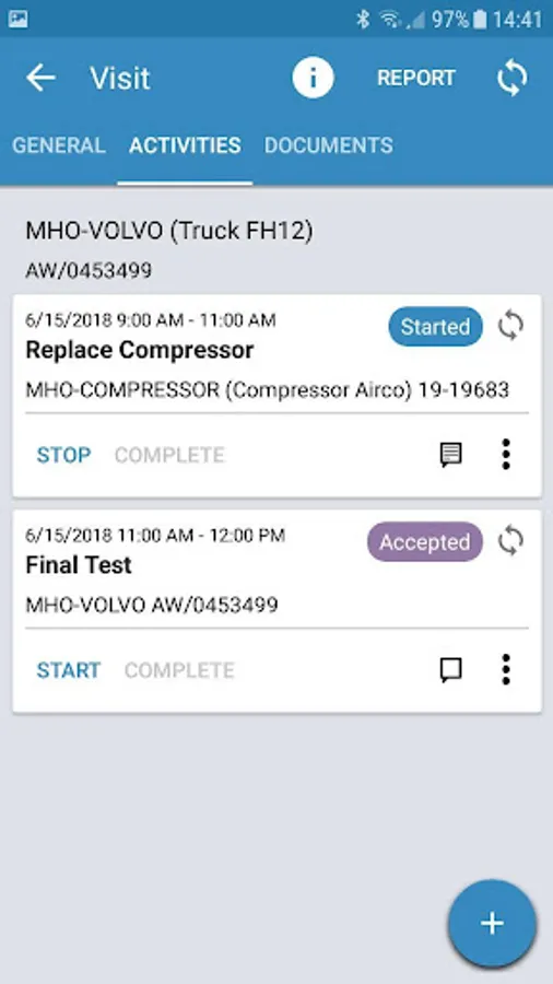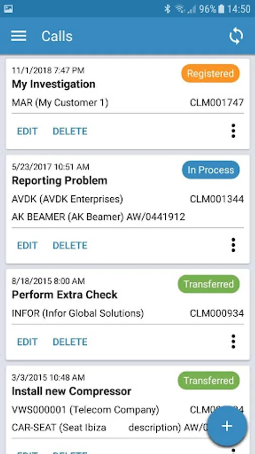 Examples are: the registration of labor, materials, other costs, inspection information, general hours and reporting the customer visit completed. Engineers are also able to register new calls, upload and download images and documents, lookup inventory levels, check installation information and navigate through physical breakdowns.