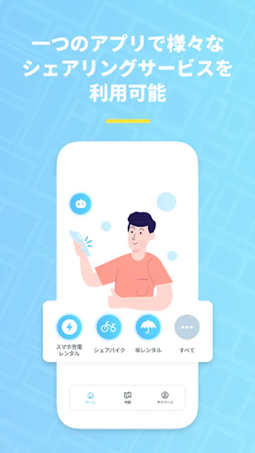 Feel free to use sharing services such as smartphone charging rentals, shared bikes, and umbrella rentals!