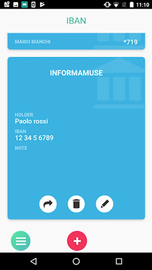 - Fast: fast access to IBAN and credit card