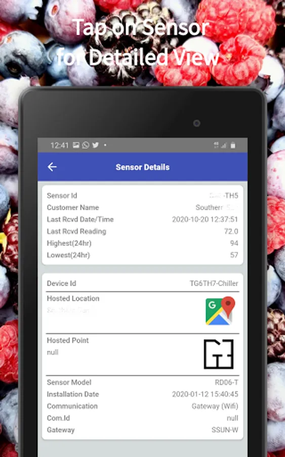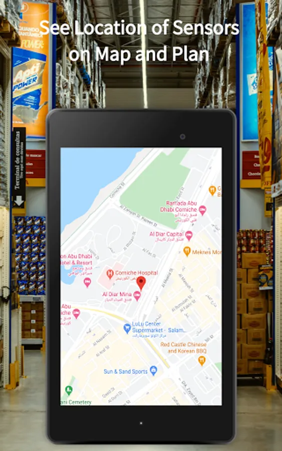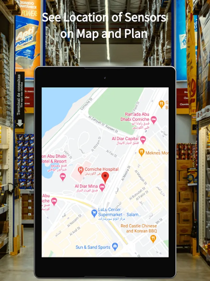 InfoSense requires installing IoT devices that has one or many sensors. For condition monitoring of warehouses, one IoT device may have temperature and humidity sensors. It will support a GSM SIM Card to transmit the data to Informap IoT platform. The app connects to the IoT platform to show you the real-time conditioning of the warehouse.