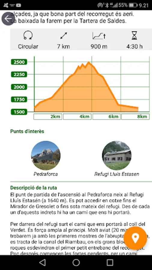 Various points of interest in Saldes, Gósol and Vallcebre, with photographs, description of each and its location on the map.
