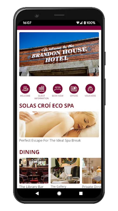 With our app you can check out all our on site drinking & dining options, see menus & book tables; find out more about the treatments on offer at the Solas Croi Eco Spa; see our guide to the hotel and local area, plus much more...
