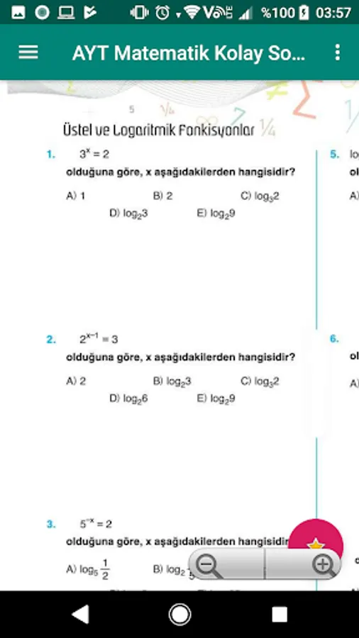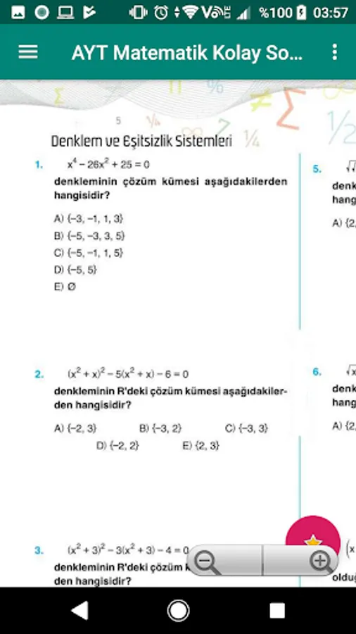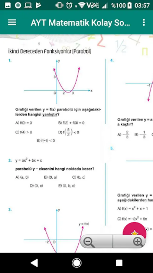AYT This program is prepared for the preparation of mathematics are easy to practice questions. Your math skills were made to increase your numerical intelligence. AYT Mathematics has never been easier. There are issues to be found in all AYT. The questions are distributed according to subjects. From the left menu you can start solving the question to the subject you want.