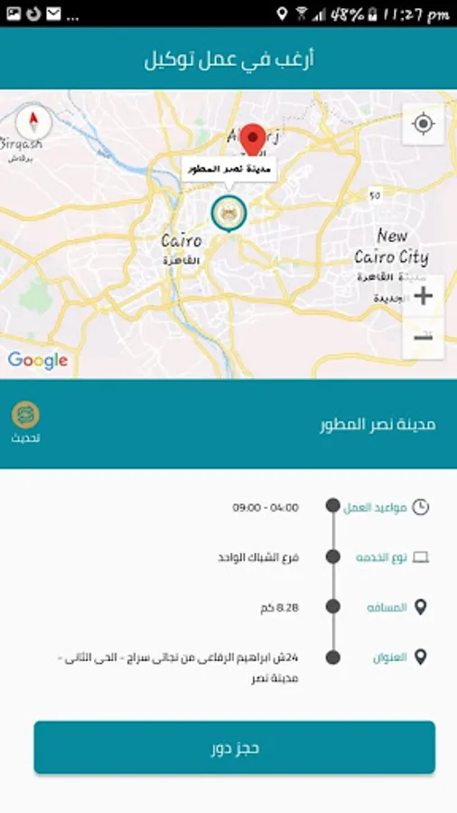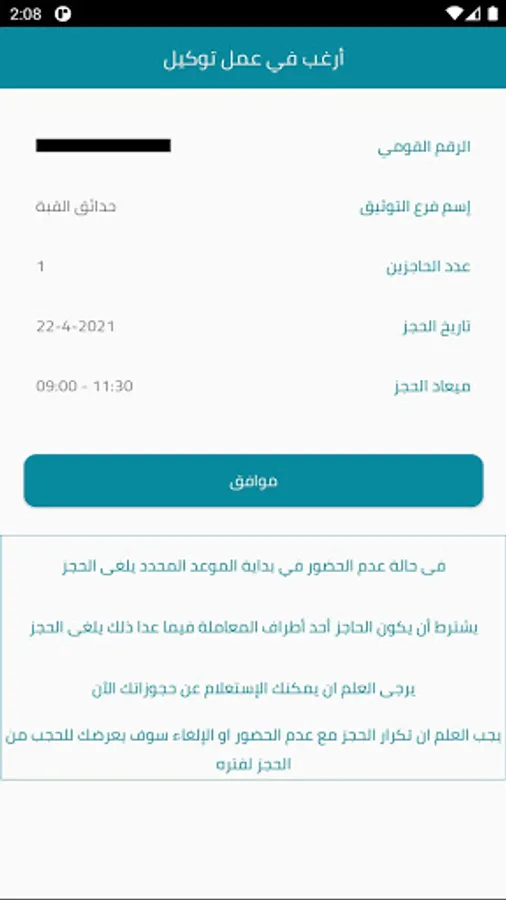 Through the Ministry of Justice application, you can now easily review which real estate registration offices provide electronic services and the number of citizens requesting a power of attorney in the morning and the evening. The user can also reserve a slot on a specific date and time to request his power of attorney in order to save his and other citizens' time.