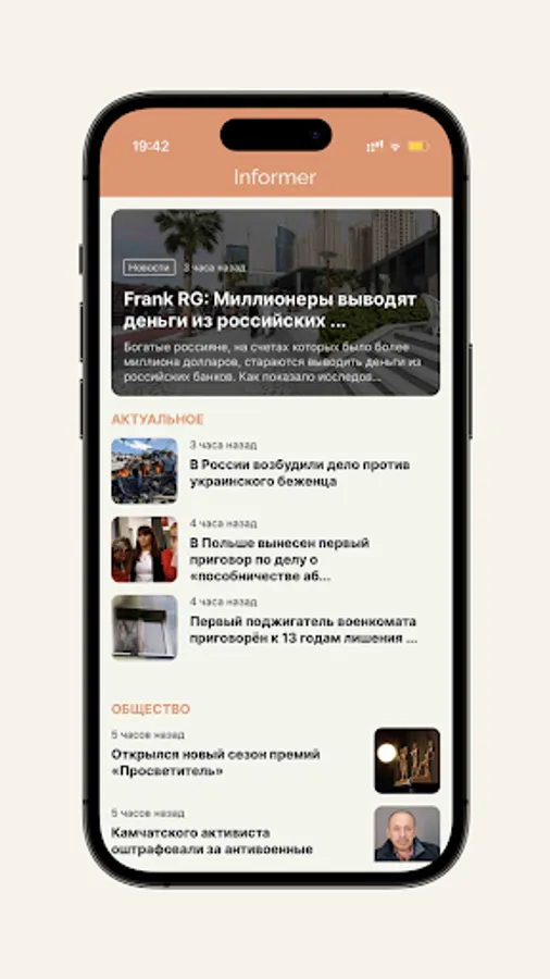 Informer is a user-friendly mobile news application that provides users with the most relevant and interesting news from the world of politics and social life.