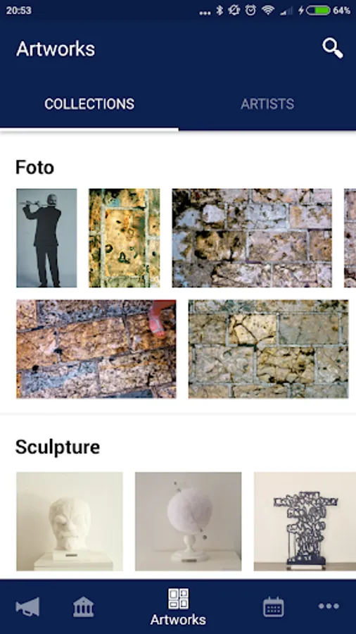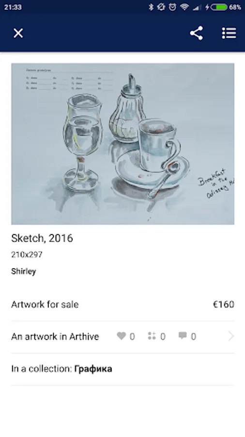 The app’s home screen is the usual social media feed. We add to the collection, share stories, report on exhibitions,