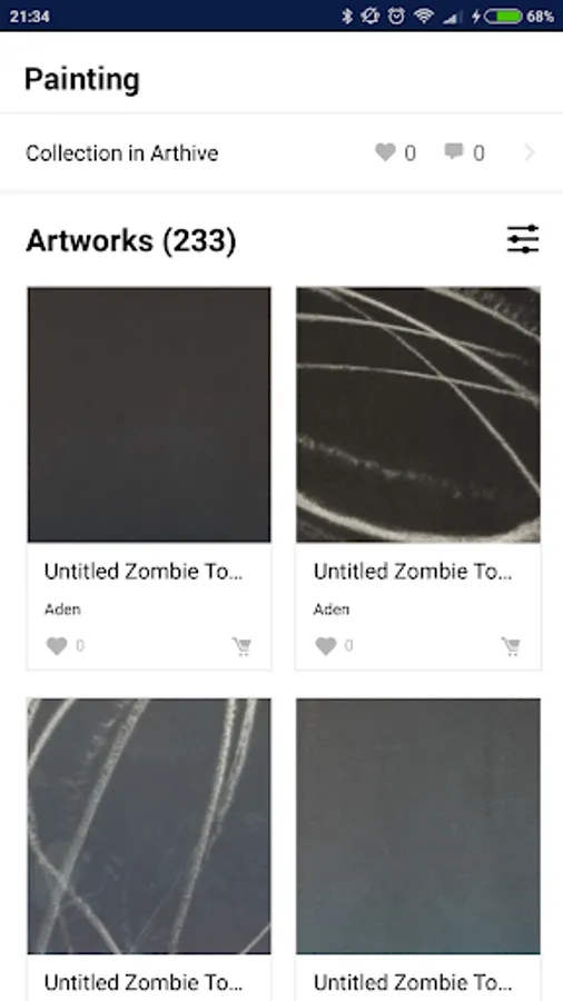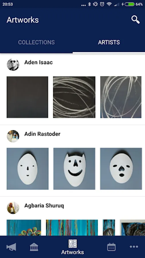 - notifications of updates, new artworks, exhibitions and artworks put up for sale;