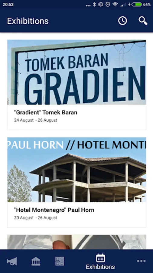 - exhibition announcements and archive with a description and list of artworks and a list of participating artists;