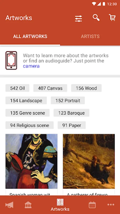 Want to know more about an artwork you`re looking at? Just open the app and point the camera at the canvas, and within a few seconds you`ll get information about the artist, how the artwork was created and a description of it.