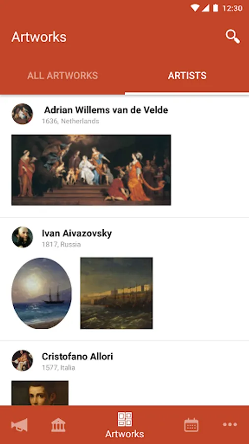 - search for interesting artworks by filters, from title and artist to size, materials and style of art