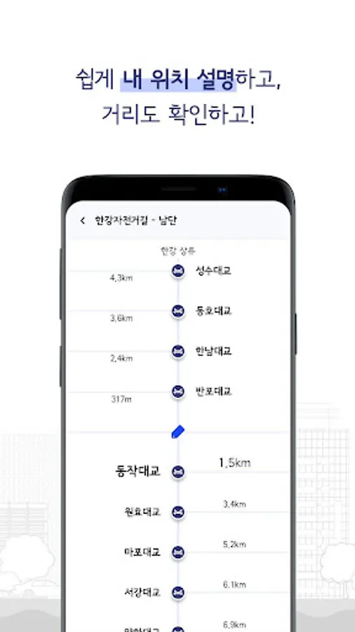 Check your location with easy expressions! Please explain my location based on the Han River Bridge.