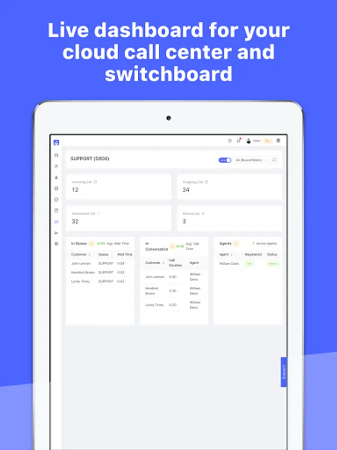 Infoset Android application allows you to manage all your support and sales channels such as incoming/outgoing calls, e-mails, live chat, social media from your mobile devices.