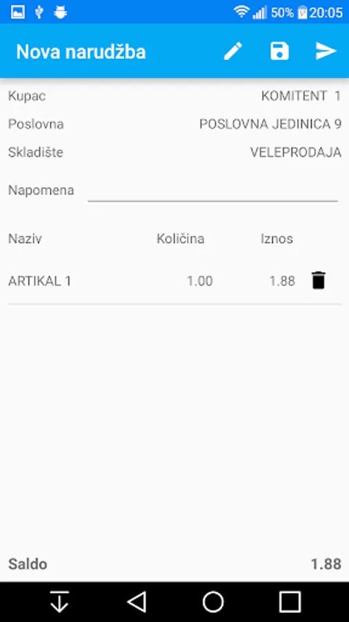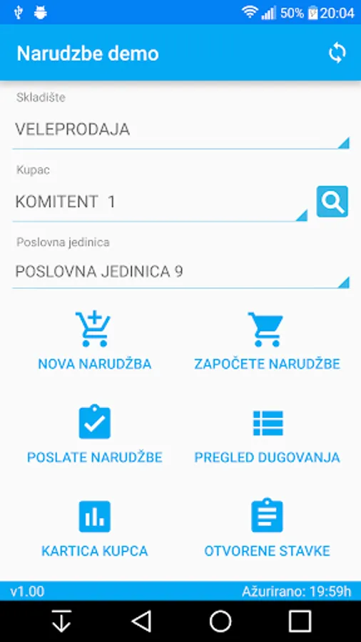 Demo orders - Infosystem - For ordering goods from the sales field.
