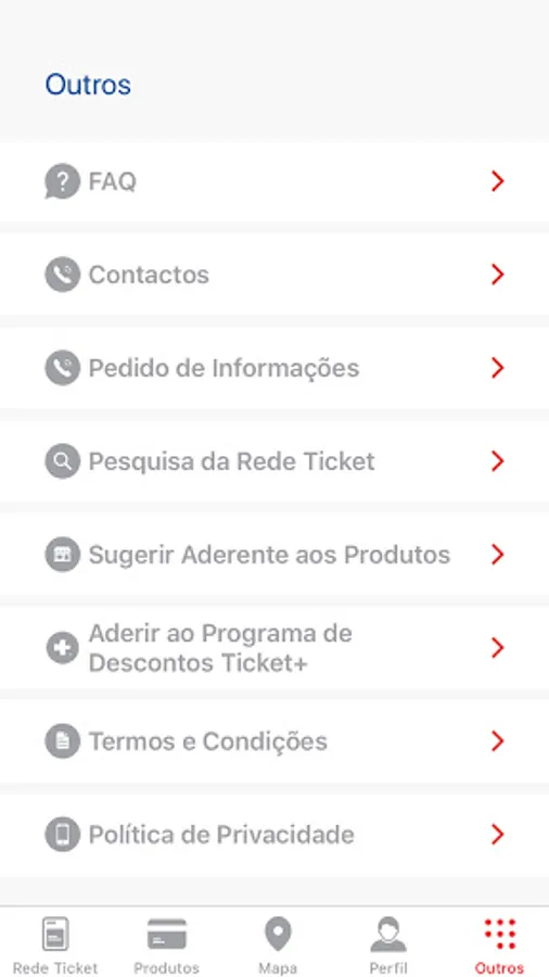 - Consultation of available digital tickets, Ticket Infância®, Ticket Educação® and Ticket Ensino®;