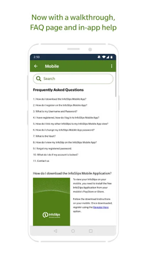 With your InfoSlips app you can: